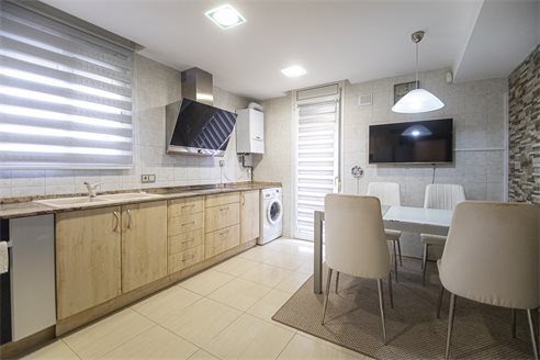 There is also a large kitchen on the ground floor. From the kitchen there is access to the street to the barbecue area, swimming pool and gazebo.