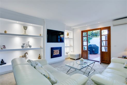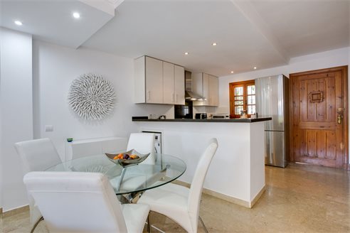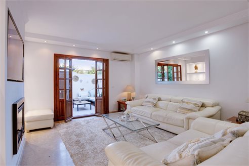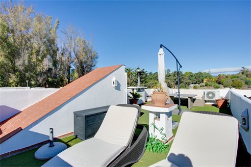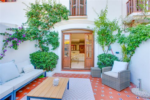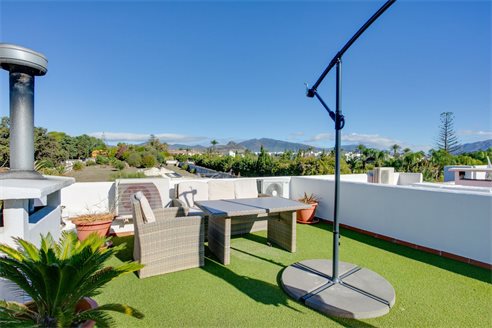 The house has been modernised and has a lovely open plan kitchen living room which leads onto the pretty courtyard terrace. Upstairs are 2 ensuite bedrooms and then a stair case leading up to the roof terrace, from here you have views of the sea and mountains. The property is located half way between Estepona and Puerto Banus and would make a fantastic holiday home or rental investment.