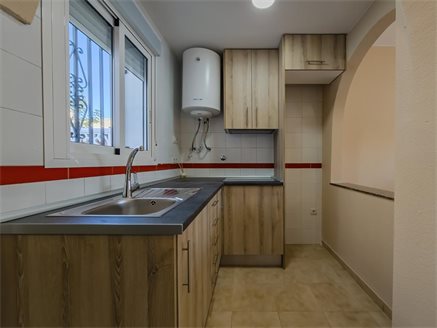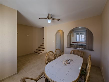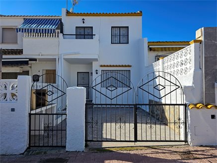 This charming duplex bungalow, located in the prestigious urbanization La Florida in Orihuela Costa, is ideal for those seeking comfort, space, and an excellent location. With a living area of 74 m² on an 86 m² plot, this property offers a practical and functional design.On the ground floor, it features a front garden that leads to a bright living room with an open-plan kitchen, a private patio, and one bedroom. The upper floor has two spacious bedrooms with built-in wardrobes, a full bathroom, and a balcony perfect for enjoying the Mediterranean climate.The urbanization includes a communal pool, ideal for relaxing and enjoying the surroundings. Additionally, the location is unbeatable: just a few minutes from Zenia Boulevard, one of the largest shopping centers in the area; close to beaches such as Playa Flamenca and La Zenia, with easy access to sports facilities, restaurants, and essential services.This home combines the tranquility of a residential area with proximity to everything you need for a comfortable and pleasant life. Don’t miss the chance to visit!If you are interested in learning more about this property without any obligation, don’t hesitate to contact us. We’ll be happy to provide additional information and schedule a viewing at your convenience. Don’t miss the opportunity to explore this home!