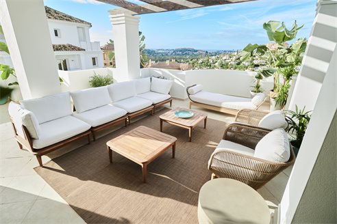 Exclusive residential complex located in the exquisite area of Nueva Andalucia. It consists of 10 blocks with 70 large and bright 2 and 3 bedroom apartments. Duplex penthouses with direct access to the solarium. All apartments have large terraces and impressive panoramic views of the Mediterranean Sea. Located between Marbella and San Pedro Alcantara, less than 4 km from the AP7 highway, 2 km from Los Naranjos and Aloha Golf courses, 5 km from Puerto Banus and the beach and 40 minutes from Malaga International Airport. Garage and storage room included in the price.