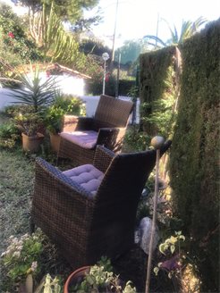 Master bedroom with en-suite bathroom (two windows) and a large terrace overlooking the palms and the golf course.