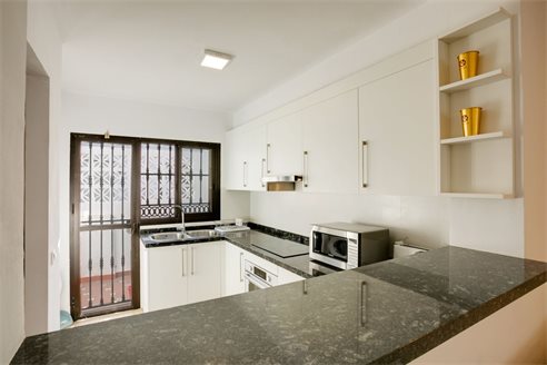 Great family home situated just 50 meters from the beach and promenade in Estepona. The house has a large living room which is semi open to the kitchen and terrace on the main entrance floor plus one of the 3 bedrooms.