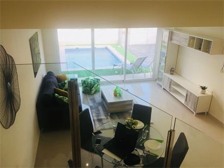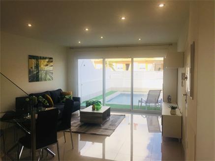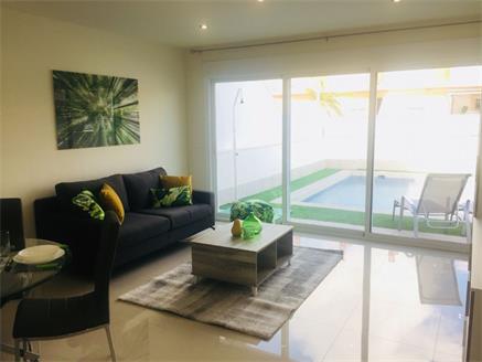 New complex of adjacent villas in Lo Pagan, in the heart of Costa Calida. The villas are designed in such a way as to maximize the use of natural light. Each of 3 bedrooms has large windows. Semi-insulated kitchen, furnished and equipped with household appliances, 3 bathrooms, several terraces (one with a summer kitchen), private pool.