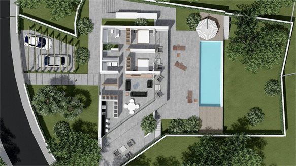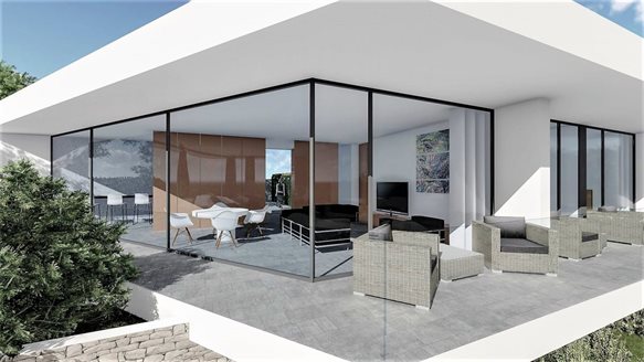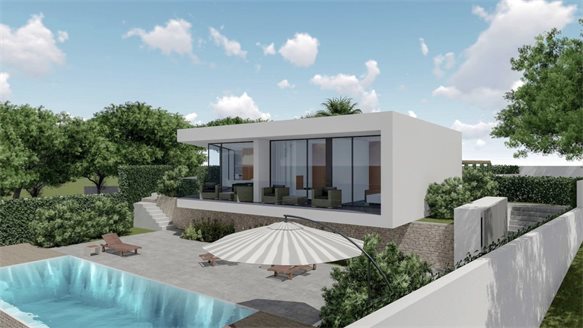 Beautiful modern villa , all on one floor, situated in a very quiet area in Benissa coast, very close to the sea, surrounded by single-family houses, only 1 km away from Benissa beach and from other small and quiet coves, and very close to all kind of facilities and services of the town. From the hall we get access to the living room with an open dining room that connects with the kitchen, with a stunning glass wall that shows the lovely outside views. In the other side we found the night area of the house which consists of a master bedroom with a walk-in closet and a complete bathroom and an additional bedroom with a bathroom and a laundry room. The two bedrooms have a nice view to the garden. This area has been planned to make use of the natural light and ventilation. Outside you can enjoy the mediterranean weather on the terrrace with the private swimming pool.