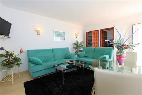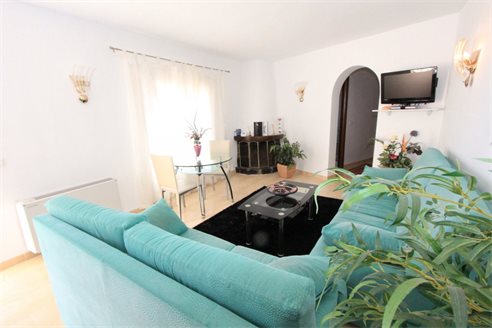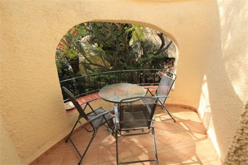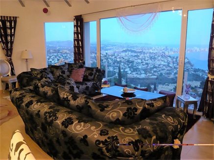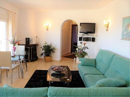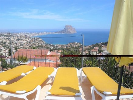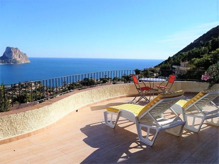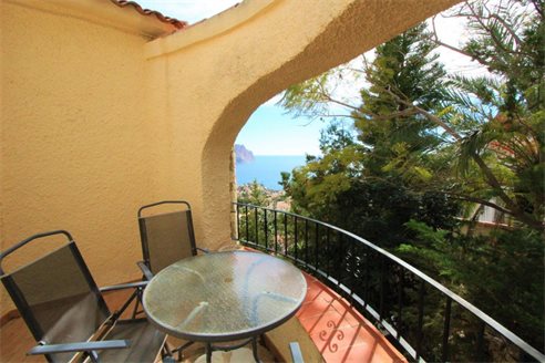The main level is in the upper part consisting of a hall, living/dining room with panoramic windows offering the best views of the bay of Calpe, fully equipped kitchen with balcony, two large double bedrooms and a family bathroom.
