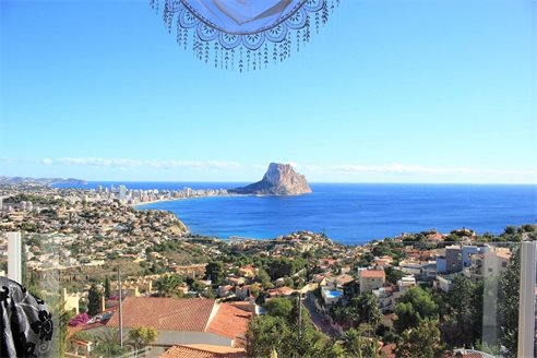 We present you this Mediterranean-style villa overlooking the fantastic sea in Calpe, in the north of the Costa Blanca in Spain only 1200 m from the beach Puerto Blanco and 750 m to the sea. We find this house in an elevated and quiet urbanization that offers the best views.