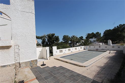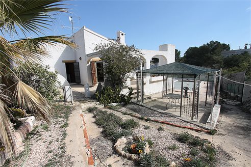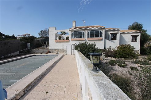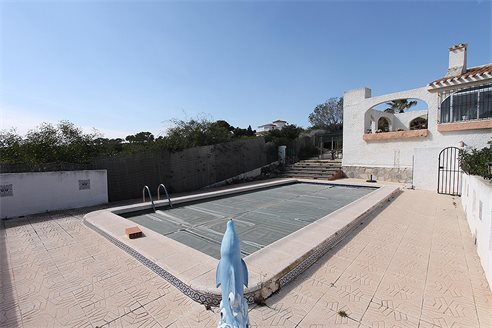 Detached villa with sea views in the urbanization Las Filipinas - Orihuela Costa. Detached villa in Orihuela Costa, Las Filipinas; house of 160 m2 with large plot of 930 m2. It consists of 3 bedrooms, 2 bathrooms, kitchen, large living room with fireplace, terrace with barbecue, storage room, garden, private pool and garage.
