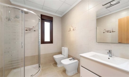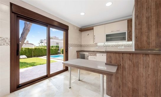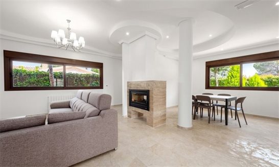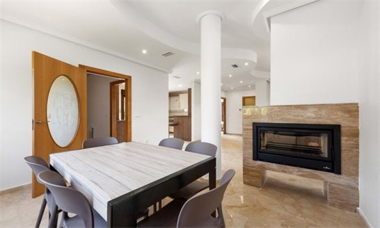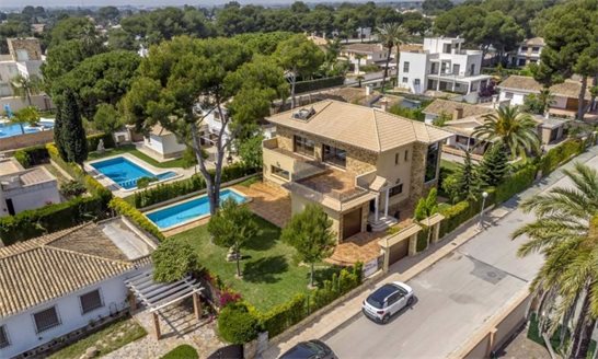 Luxury villa mod. "Veronica" located in Dehesa de Campoamor, one of the most beautiful corners of Costa Blanca, with beautiful pine forests, near the sea, marinas, shopping centers with all services, and a few minutes from 4 golf courses. Villa with built area of 297 m2 on the plot of 700 m2 with 5 bedrooms, 4 bathrooms, spacious and bright living room, kitchen. The house has central air conditioning, gas heating, fireplace in living room, marble floors, automatic shutters, solarium of 50m2. Private garden with swimming pool, closed garage. With a well thought out layot, this villa has been built to enjoy the best position,&with ample outwards-facing spaces,&terraces, landscaped paths&and solarium, creating an environment focused on outdoor living. 15 km from San Javier Airport, 2 km from the best golf courses in the area and only 600 m from the beach.