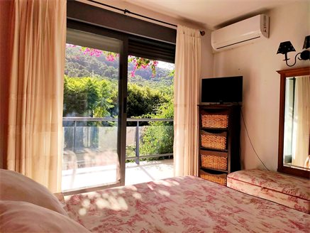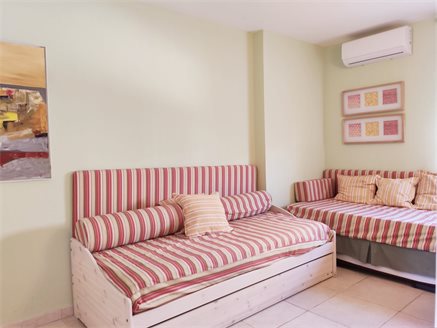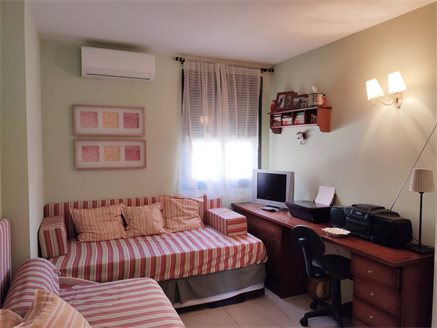 It consists of a ground floor of 47m2, where there is a spacious living room of 26m2 with access to the terrace and to the common areas, a furnished and equipped kitchen, a bathroom, 3 double bedrooms with fitted wardrobes (the master bedroom has a bathroom) and access to the terrace of 10m2, where you can enjoy beautiful views of the pine trees and the nature park, 1 shared bathroom. The house also has air conditioning, double glazed windows, automatic watering, car parking and two storage rooms on the ground floor with a separate entrance to the house. In the general urbanization zone there are three swimming pools, a children's playground, a paddle tennis court, a gym and a social club. Very quiet and well maintained urbanization.