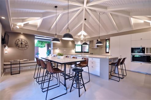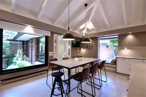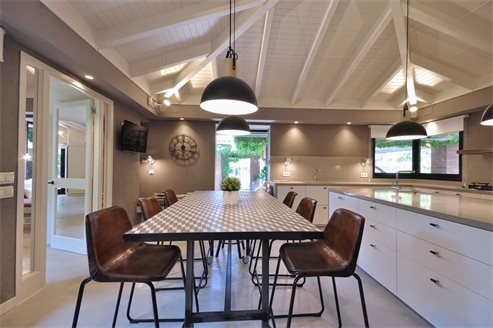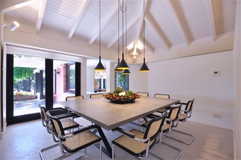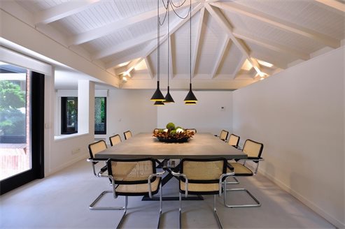 Garage for four cars, tennis court, barbecue and large swimming pool with summer dining area of 70 m2.