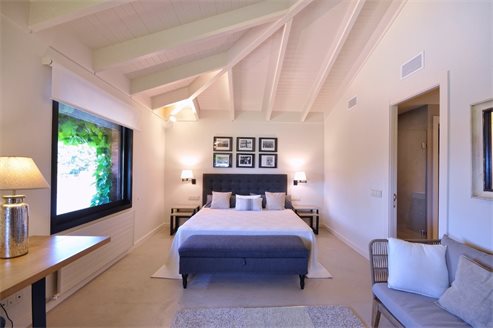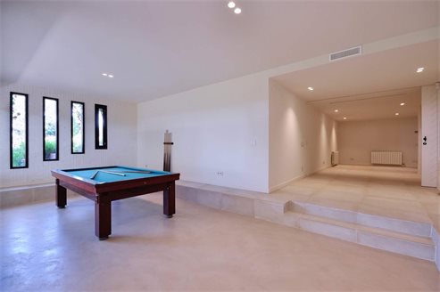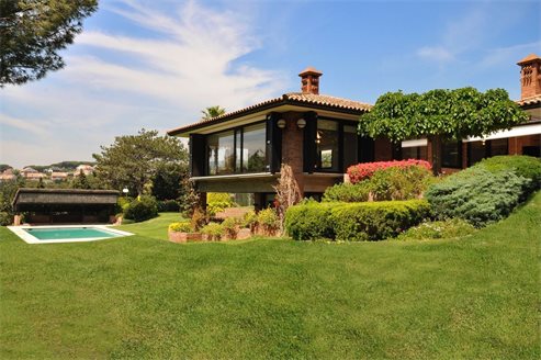 Designed over two floors, both with direct access to the magnificent garden thanks to the soft topography of the ground, the ground floor of over 600 m2 contains a large living room with a spectacular copper fireplace, dining room, kitchen, office, master bedroom with dressing room, another bedroom and a large bedroom with bathroom, which can be divided into two rooms with two separate beds. There is a guest house with a separate entrance, consisting of a living room with built-in kitchen, bathroom and bedroom. On the lower floor there are almost 200 m2, a billiard room, a recreation room, a kitchen, a cellar, an engine room, a service room and another room with a bathroom.