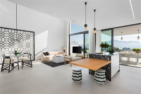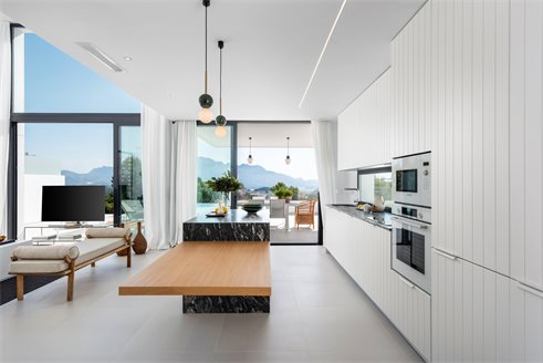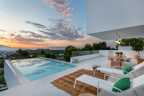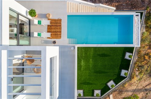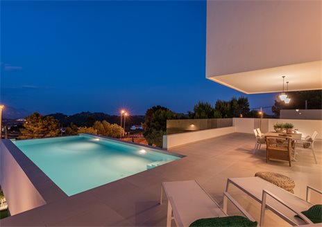 Quality overview: Siemens or Bosch devices. Air conditioning. Lighting inside and outside. Architecture of the garden. Infinity pool 9x3.00. Motorized shutters. Built-in wardrobes. Dressing table. The builder reserves the right, in the course of carrying out the work, to make the necessary changes due to technical, legal or commercial nature, without implying a deterioration of the general level of quality.