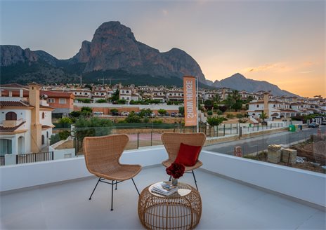 Polop is a municipality located 9 km from the coast in the province of Alicante. The region is also called ̈la Marina Baixa ̈. Venecia III is near the natural reserve of the mountain range Puig Campana in a privileged area and it is surrounded by beautiful nature. One can also enjoy the extensive beaches which are located at only 10 km. Polop itself has an ancient center with its typical narrow streets which are connected to the upper area where the Iglesia de San Pedro ́is located.The church and castle give Polop it ́s iconic view and one of the most picturesque villages on the Costa Blanca. Polop is a quiet town where you can find everything for your daily needs, like restaurants, shops and school. By car Benidorm and Altea are just a 15 minute drive. The city of Alicante is 30 minutes and the Airport 35 minutes. The motorway (AP-7) provides a fast connection to the rest of region.