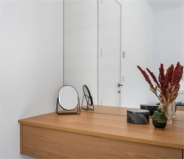 - Entrance-Glass cube-Decorative floors and mirror cabinets as in the pilot-Security door.