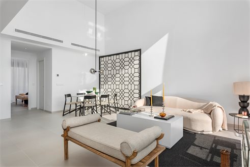 - Paving and coating-Interior, exterior and skirting of the same porcelain floors throughout the house and outside (non-skid)-Bathroom coating according to the interior design project.
