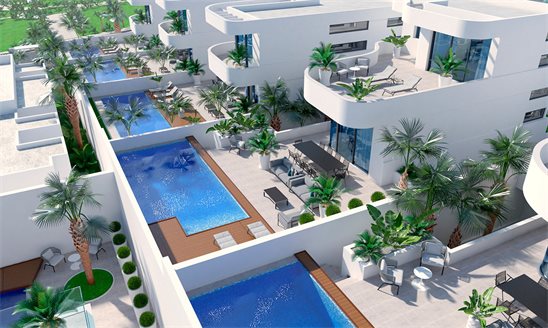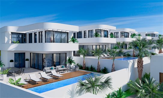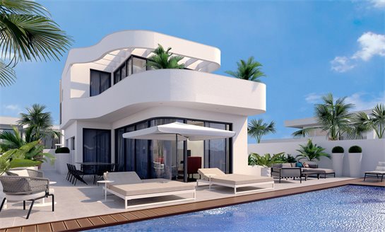 The properties are available a choice of villas of various sizes with 3-6 double bedrooms and 3-5 bathrooms. Completion of construction - December 2019. The villa is equipped with appliances from Balay, includes a private pool, fully finished and furnished. The house is located on a large plot of 200 m2. Prices start from € 269.875 to € 418,850. Relax and enjoy your spacious pool and relax on the large sun terrace.