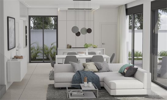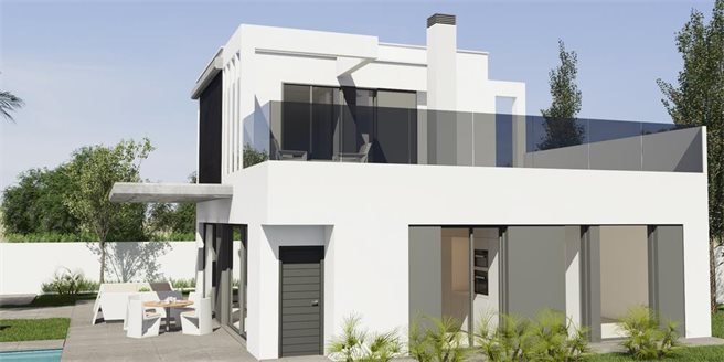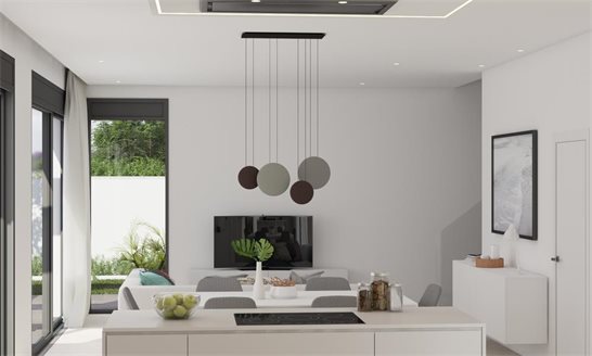 Modern villa in El Campello, located near the beach in the north of the Costa Blanca region. The villa includes a spacious living room with an open kitchen, 3 bedrooms, 3 bathrooms, a cozy terrace overlooking the garden and a private pool. The house has a basement that can be converted into a gym, sauna, games room, home cinema or an extra bedroom.