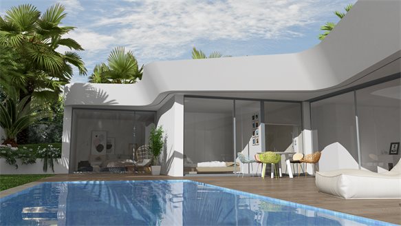 This villa of 320m2 (living area 235 m2) has a plot of 1000m2, consists of 3 bedrooms, 3 bathrooms, 1 toilet, a spacious living-dining room and a fully equipped kitchen. There is a separate studio with a bedroom and a bathroom. Also, the villa has its own swimming pool with landscaped garden.