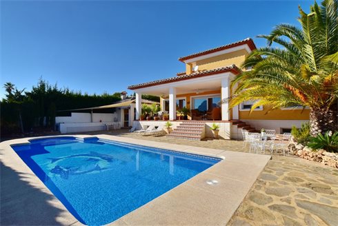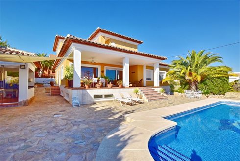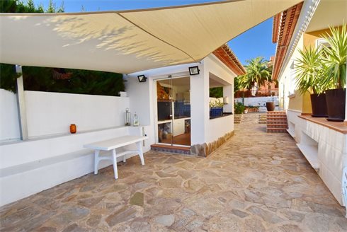 Fantastic sea view villa for sale in Calpe. This wonderful villa was built in 2005 with high quality materials and a solid concrete structure. The house has three levels, with a total of 475m2. The basement of the house with garage, bathroom and space to create more rooms has 200m2. On the ground floor there is a spacious living room, separate kitchen with dining room and storage, 2 bedrooms and 2 bathrooms. In front of the living room there is a huge covered terrace overlooking the sea and the pool. Next to the pool is the summer kitchen with barbecue, terraces and outdoor shower. On the second floor there are 2 bedrooms and a bathroom. From the 2 bedrooms you can access a terrace with a beautiful view of the sea. The villa dipsone with oil central heating, air conditioning c / f, security windows, musketeers, laundry and alarm. It has a very large garage and offers parking for several cars.