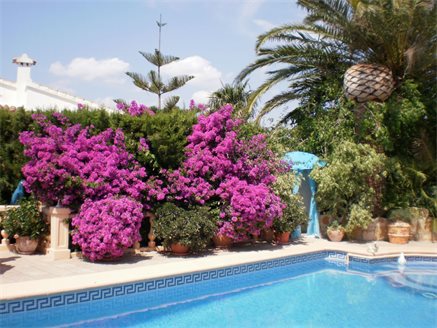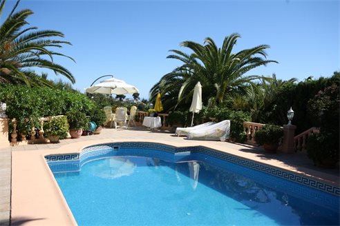 Magnificent mediterranean style villa for sale with sea views in a popular residential area in Moraira. This villa was built on a private plot of 1.340m2. A lush and aple subtropical garden surrounds the house and for garden lovers this is the ideal place to be. Every plant and every tree is connected to an automatic irrigation system.