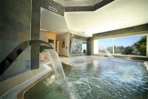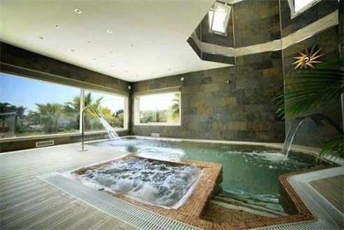 Additional features include marble floors, fittings and fixtures in very high-quality, indoor pool, sauna, gym, and other amenities such as air conditioning pool and jacuzzi, security system, heating, airconditioning system, large garage, parking, barbecue, etc.[IW]