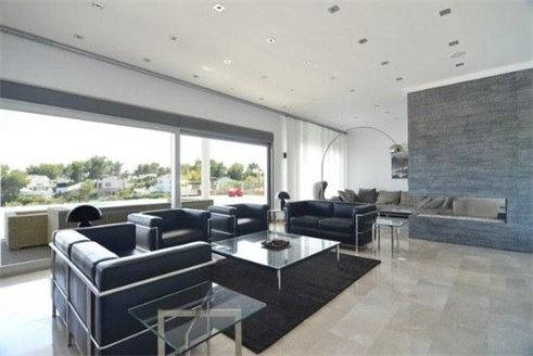 A high entrance Hall / lobby on two floors, a spacious living room with fireplace, spacious kitchen. The main living units have direct access to the partly covered terraces from where you can also reach the garden and the infinity pool.