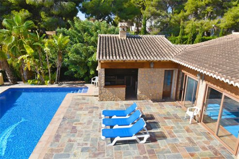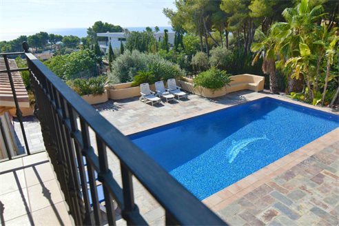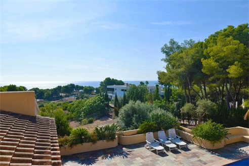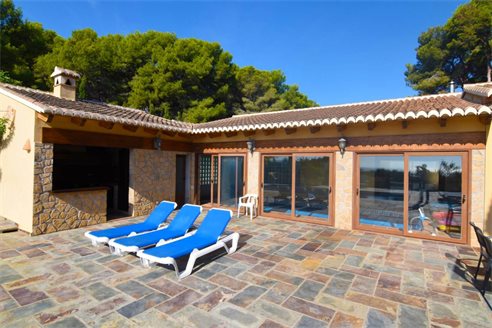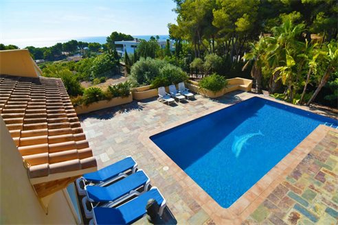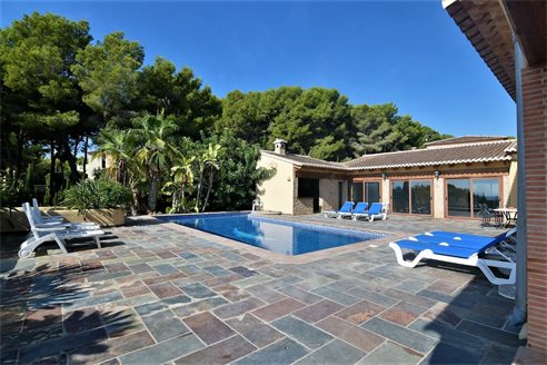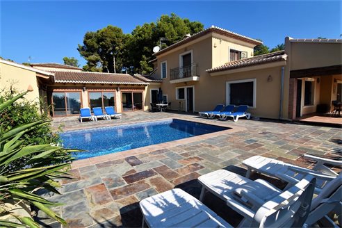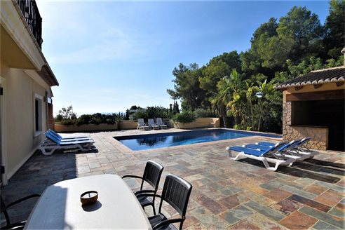 A luxurious 6 bedroom villa in Moraira, with private pool, party room, sea views and a covered pool, just 1 km distance to the beach.