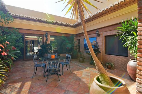 This villa is equipped with double glass in all windows, indoor pool, central heating by gas, fireplace, air conditioned, andalusian courtyard, sauna, jacuzzi and is comprised of an entrance- hall, 3 living dining rooms, 2 kitchens, 6 double bedrooms, 6 family bathrooms, a party room with bar, barbecue, summer kitchen, store room and a laundry room.