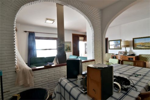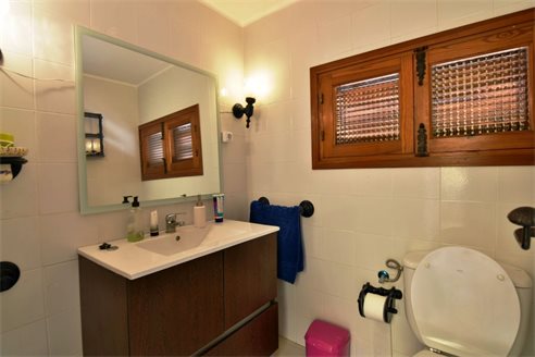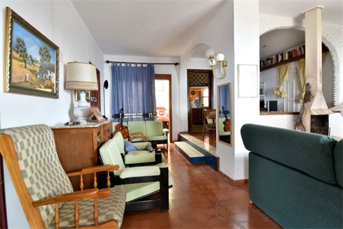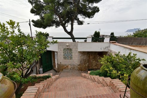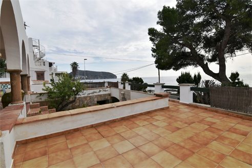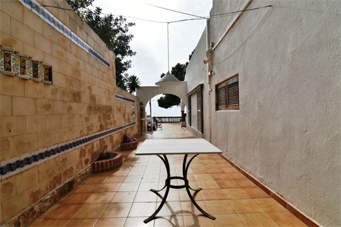 Entrance from the garage by external stairway, on to the covered terrace with panoramic sea views. From the terrace there is access to the living- dining room, with air conditioned, central heating and open fire place.