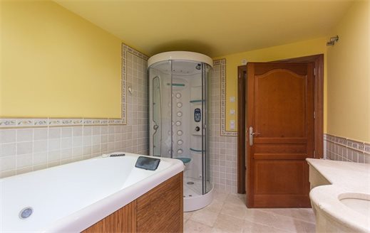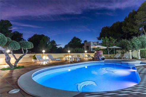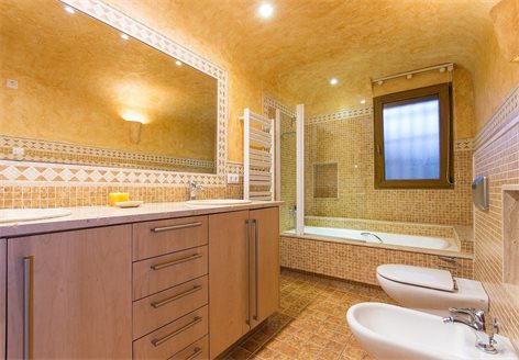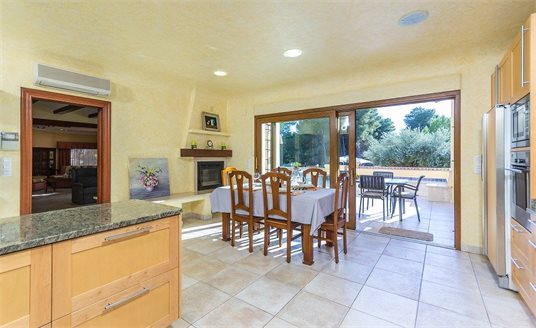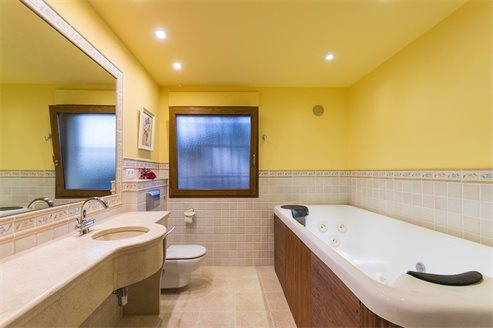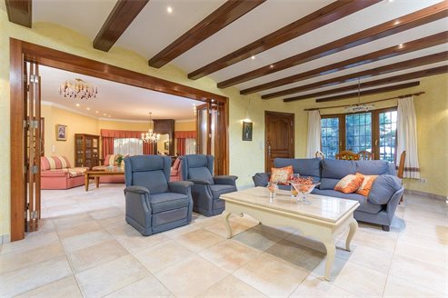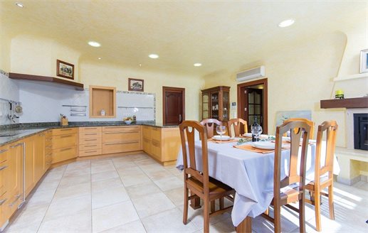 This property is built on a plot of 2,000 m2. From the automated access gate leads directly to a large car park and the garage . From here you have access to the house . At this level there is a lounge, two bedrooms , a storeroom and a wide staircase leads to the spacious main living and dining area, a hallway to the master bedroom and 2 additional bedrooms that have a walk-in closets and en-suite bathrooms. On this level, on the back of the hous, there is the large kitchen with double glass doors leading to the terrace and barbecue area. The villa has a total living area of 800 m2.