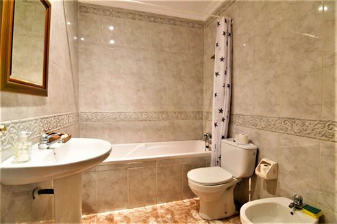Is comprised of a living- dining room, an open plan kitchen, 2 bedrooms and a family bathroom, with bathtub, sink and wc.