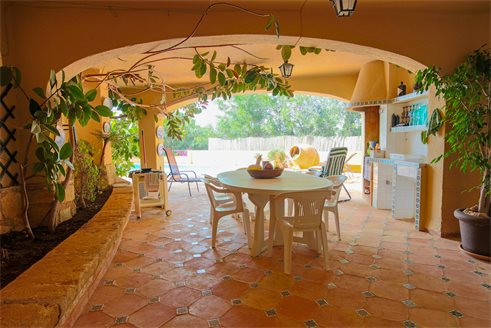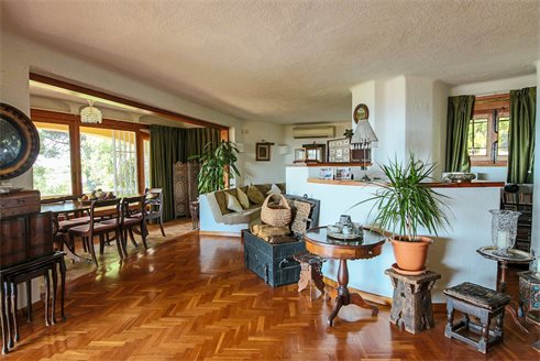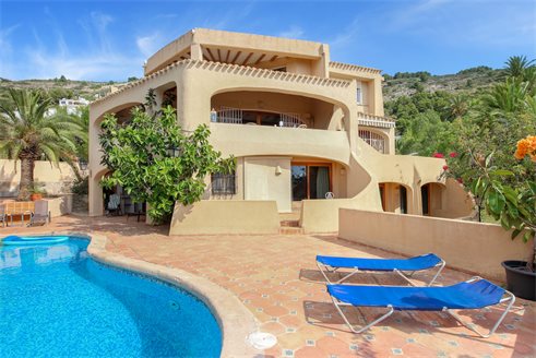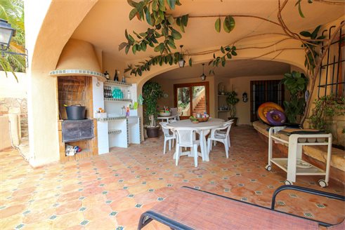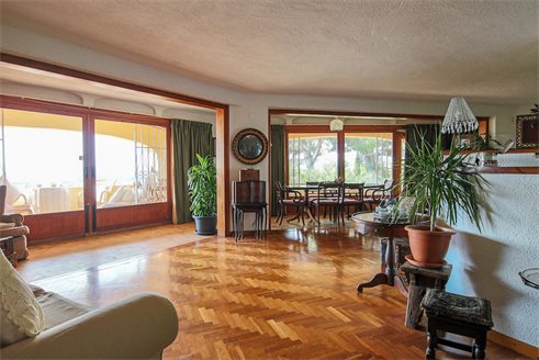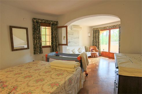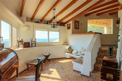 This superb villa comprises of: an entrance hall with a curved staircase, a spacious open plan lounge/dining room with a bar area and fireplace.The lounge opens onto a lovely covered terrace with seating areas and stunning sea views. It has a large, separate kitchen with a utility room and pantry, and steps that lead down to a separate en suite double bedroom.Upstairs there is an art studio and office, with a terrace that also enjoys incredible sea views. In total there are 8 bedrooms, 5 bathrooms and 2 guest toilets, most bedrooms have a terrace or access to the beautiful mediterranean gardens with fruit trees, a summer kitchen, a large terrace and an 10 x 5 swimming pool.There is also a separate sauna and spa room, that hasn’t been used for some time.The villa benefits from air conditioning, central heating, 3 carports and a private garage.