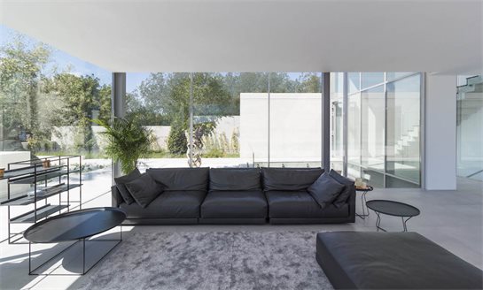 Huge panoramic glass windows open up onto the infinity pool and beautiful lawn with breathtaking front-line sea views.