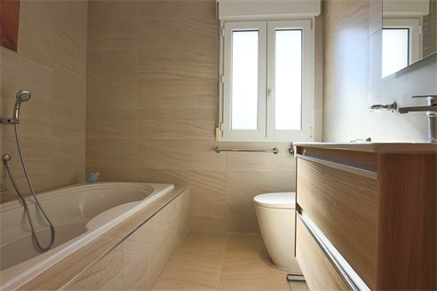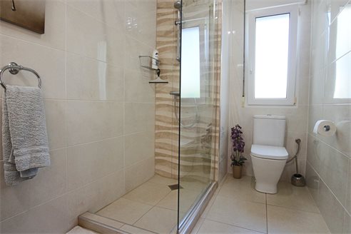 An open plan fully equipped modern kitchen is adjacent to the dining room with lovely Tosca stone arches. Also on this level is the master bedroom suite with dressing area and super contemporary bathroom with bath and separate shower.