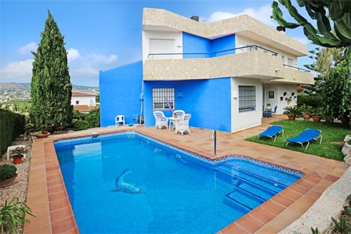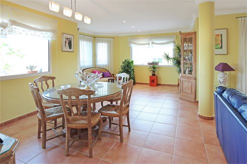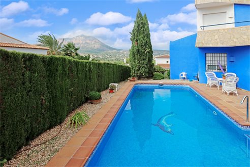 The villa also has a solarium on the top level which has some fantastic views just as the terrace that goes around the villa does. The non-slip tiled terraces that surround the private swimming pool with fountain also enjoy some fabulous views to the Montgo.