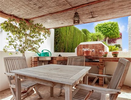 The lovely barbecue area comes with a pergola for sitting in the shade, while the inviting swimming pool is nicely nestled within plenty of terraces for relaxing in the sun and enjoying the wonderful view.