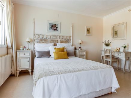 This superb villa consists of: a large master bedroom with a spacious en-suite with corner bath and shower cubicle and a private cosy balcony that overlooks the swimming pool, two spacious double bedrooms both with fitted wardrobes, a large fully equipped kitchen and a generous living/dining area with fireplace and traditional beam and barrel ceiling as well as access, via sliding glass doors, to a lovely glazed naya which is south facing.
