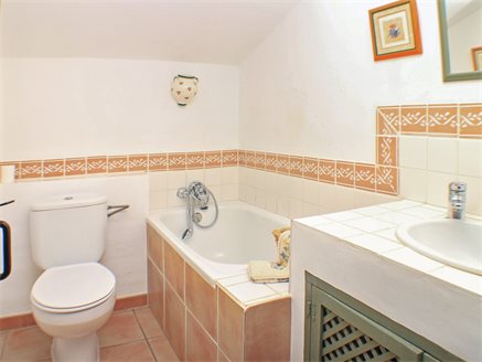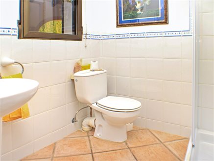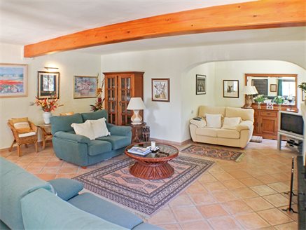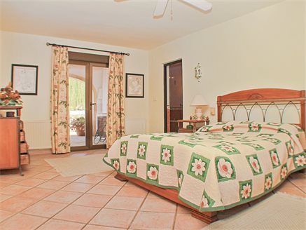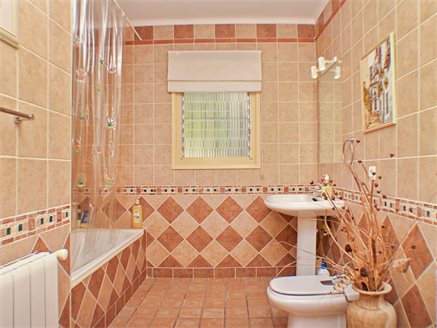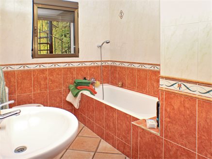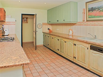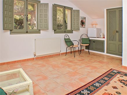 On the other side of the hallway we have the main house which is composed of: a large L-shaped kitchen from which patio doors lead to a large covered naya adjacent to the pool and terrace, a family bathroom, a master bedroom with en-suite bathroom and access to the covered poolside naya, a second bedroom with en-suite, two more bedrooms with access to the large covered naya, and a fifth bedroom is the last one on this level - all of the bedrooms come with fitted wardrobes.