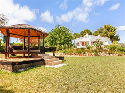 This enviable family home benefits from a special location in a highly desired area, amongst wonderful green mature gardens, only minutes away from the Javea Old Town.