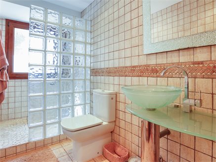 Several tasteful terraces surround the villa and, the outside, apart from the beautiful swimming pool (which comes with a waterfall feature) also offers a spacious pergola where you can enjoy the spectacular Spanish sunlight while keeping in the shade.