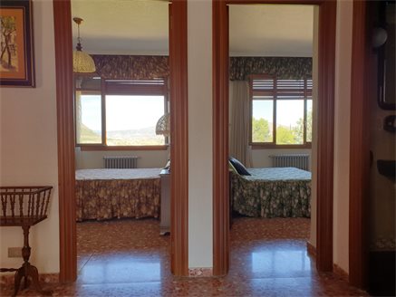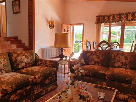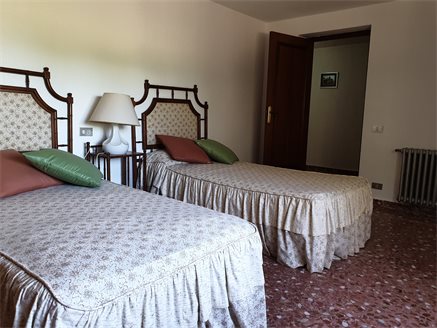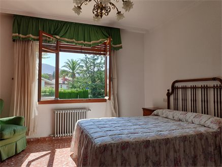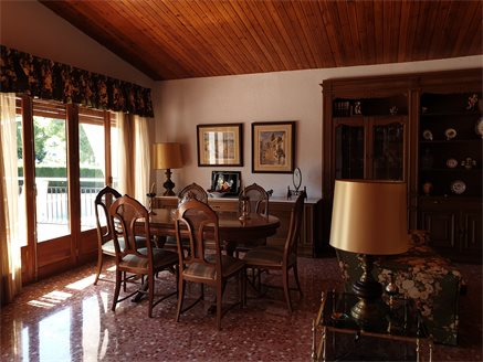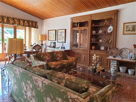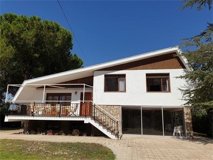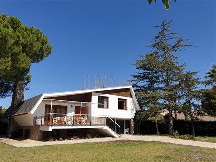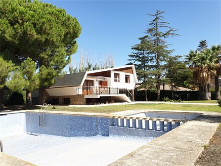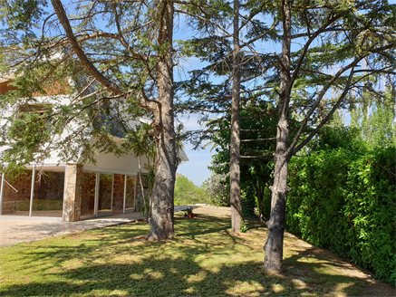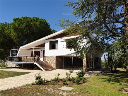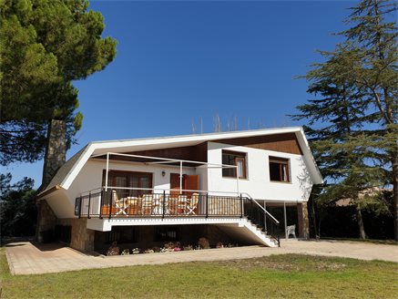 The villa has a plot of 2,800 m2 and 280 m2 built, is distributed in basement, ground floor and first floor, communicated with each other by internal stairs. In the basement there is a spacious living room with fireplace, kitchen and pantry, 1 bedroom with wardrobe and a bathroom. The ground floor consists of living room with fireplace with access to terrace, porch, garden and pool, equipped kitchen, gallery, lobby. Upstairs you can find 4 large bedrooms with fitted wardrobes, 2 bathrooms with tub. In the surroundings we find a pediment with changing rooms and fruit trees. The rooms of the chalet are large, all exterior and very bright.