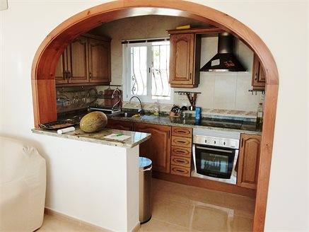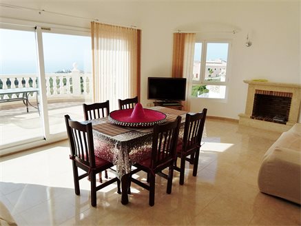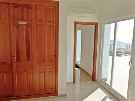 The ground floor of the home has two bedrooms and a bathroom with shower, while the second floor consists of: a master bedroom, a bathroom with Jacuzzi and shower, a guest toilet, a fully equipped American style kitchen, and a spacious lounge with fireplace and access to the tastefully furnished terrace from which spectacular sea views can e enjoyed.