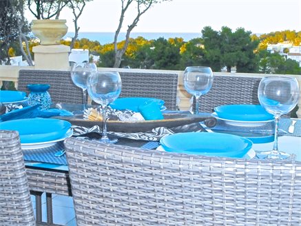 The first level of the villa is composed of: two double bedrooms, a family bathroom, and a spacious living room with sliding glass doors onto a covered naya where there is a billiard table and a generous sitting area, perfect for hosting cosy parties. The upper level is made up of: three double bedrooms, two bathrooms, and a large American style kitchen which connects through sliding glass doors to an open terrace that overlooks the swimming pool while also offering fantastic views of the sea. The villa comes with a garage that can accommodate two cars. The outside of the property is rich in great features like table tennis, petanque court, private swimming pool, an attractively landscaped garden featuring a waterfall, and a fully equipped summer kitchen with bar for all those special summer evenings. This pristine luxurious villa, fully furnished, with high quality fixtures and fittings, can be looked at as a holiday rental investment as well.