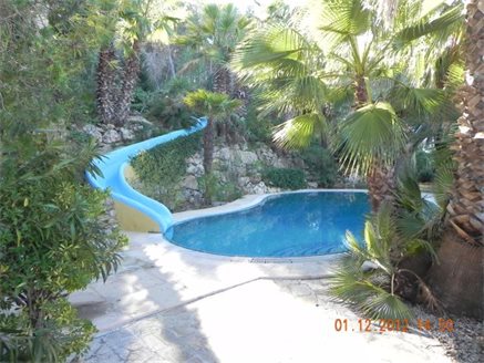 The property comes with many extra stunning features, some of which are: the previously mentioned two swimming pools (which are joined by a water chute), central heating and air conditioning, storage room and garage for three cars, electric gates, an aviary and stable for two horses, a conservatory and many other features.