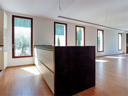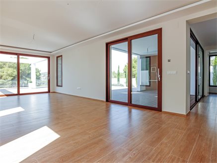As we enter the house we first see the open plan living area while also being greeted by the amazing views that are provided by glass sliding doors to a spacious terrace.