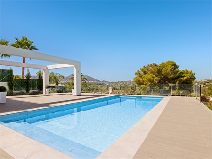 Three bedroom contemporary luxurious villa for sale in Rafalet, Javea, swimming pool, panoramic views and key ready.