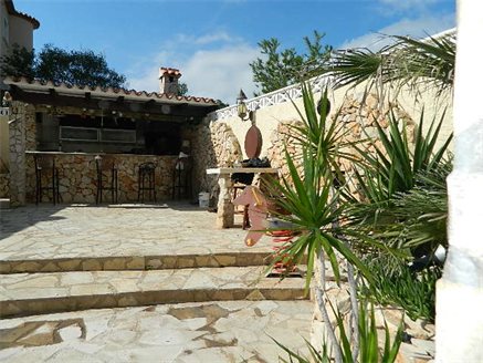 Some of the outstanding features of this home are, inside: master bedroom complete with its own fireplace, summer kitchen, bar, jacuzzi. Outside are: garage for two cars, three large terraces, easy maintenance plot, and views of the island of Ibiza on a clear day, which, in the area, is most of the year.