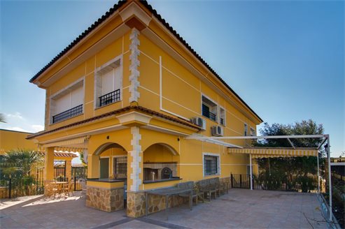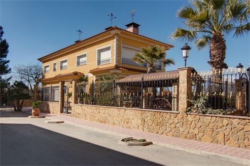 Luxury rustic Mediterranean-style villa with 4 bedrooms, double height living room, fireplace, radiator heating (diesel), double enclosed garage, large terraces with bar area, wood-burning oven, etc. On the farm, there is another 2 bedroom guest house, with independent access (also with heating). The pool has a mobile roof structure that will allow you to use it both in summer and winter and is heated. Next to the pool, there are leisure rooms for: Spa area with gym, jacuzzi, bathroom etc. In front of the house, a large party room with stage and DJ booth, Karaoke, large lounge area, kitchen, bathroom, 1 bedroom / office room and Underground Cellar in the basement with capacity for 3,000 bottles. DIY room with tools and machinery. In addition, the farm is planted with citrus fruits, in production and with benefits. It has a technical ship with the drip irrigation equipment of the farm, storage and heating boiler.The access to the farm is through automatic sliding doors (with remote control and opening from the intercom). There is a Playground for children with ecological swing and playground. Road traffic areas paved and sidewalks. All buildings have their respective building license and are duly registered. Light and running water. In addition, the property has the right to irrigate a large raft (around which there is a walking circuit that has rest areas and even piped music. The property is very well maintained and could be used for different uses such as: