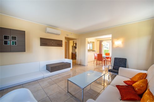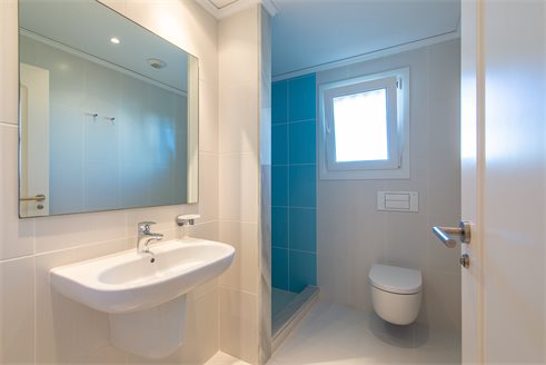 This villa, abutting the golf course, is a magnificient option if you would like to establish your residence in the resort . It has a plot with a total area of 353.43 m2 and 112.45 m2 constructed area. The villa comprises living room, dining room, kitchen, two bedrooms and two bathrooms. Moreover, a private parking space within the plot and a private garden. The villa is constructed with thermal insulation in the roof, by means of rock wool panels between the roof partitions and thermal and acoustic insulation of the roller blind casings; special foundation with a ground slab of reinforced concrete. Morover, waterproofing by means of bitumen layers with polyester reinforcement.