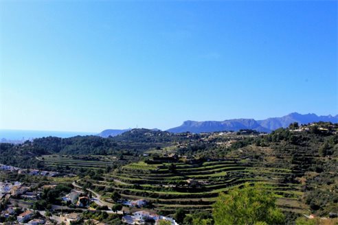 It is located in a privileged enclave, offering the best panoramic views, fantastic views of 320 degrees from the Moraira cape, views of the beautiful blue Mediterranean sea reaching the coast of Calpe with its impressive and famous Peñon de Ifach, mountains views and in the background a green and natural landscape.